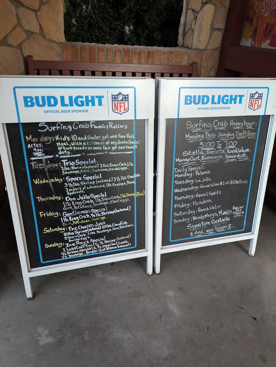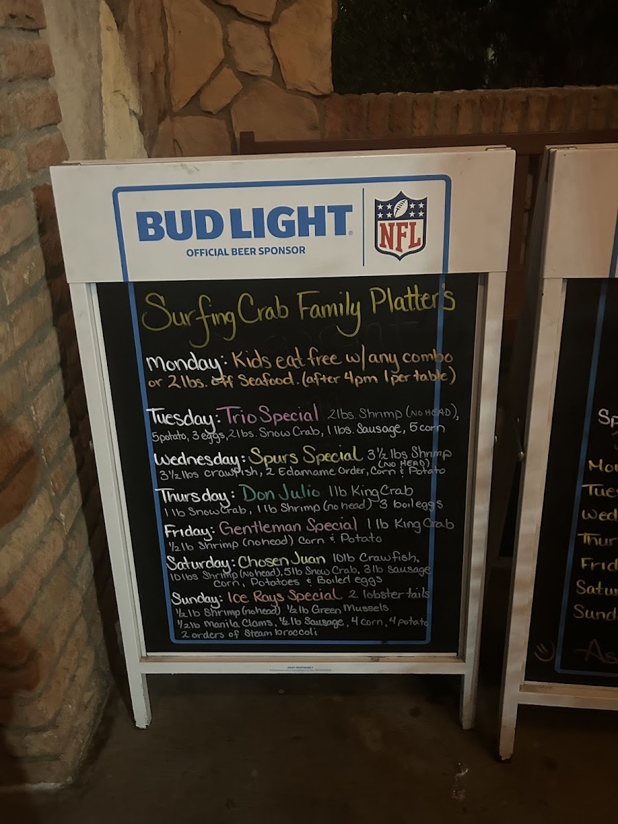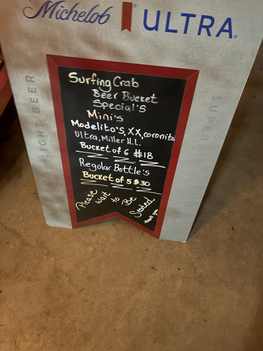 Crawfish served in 1/2 lb or 1 lb portions. Flavors: Cajun, Garlic Butter, Lemon Pepper, Old Bay and Garlic Butter, or Surfing Special. Choose spicy level from Mild to Fire.