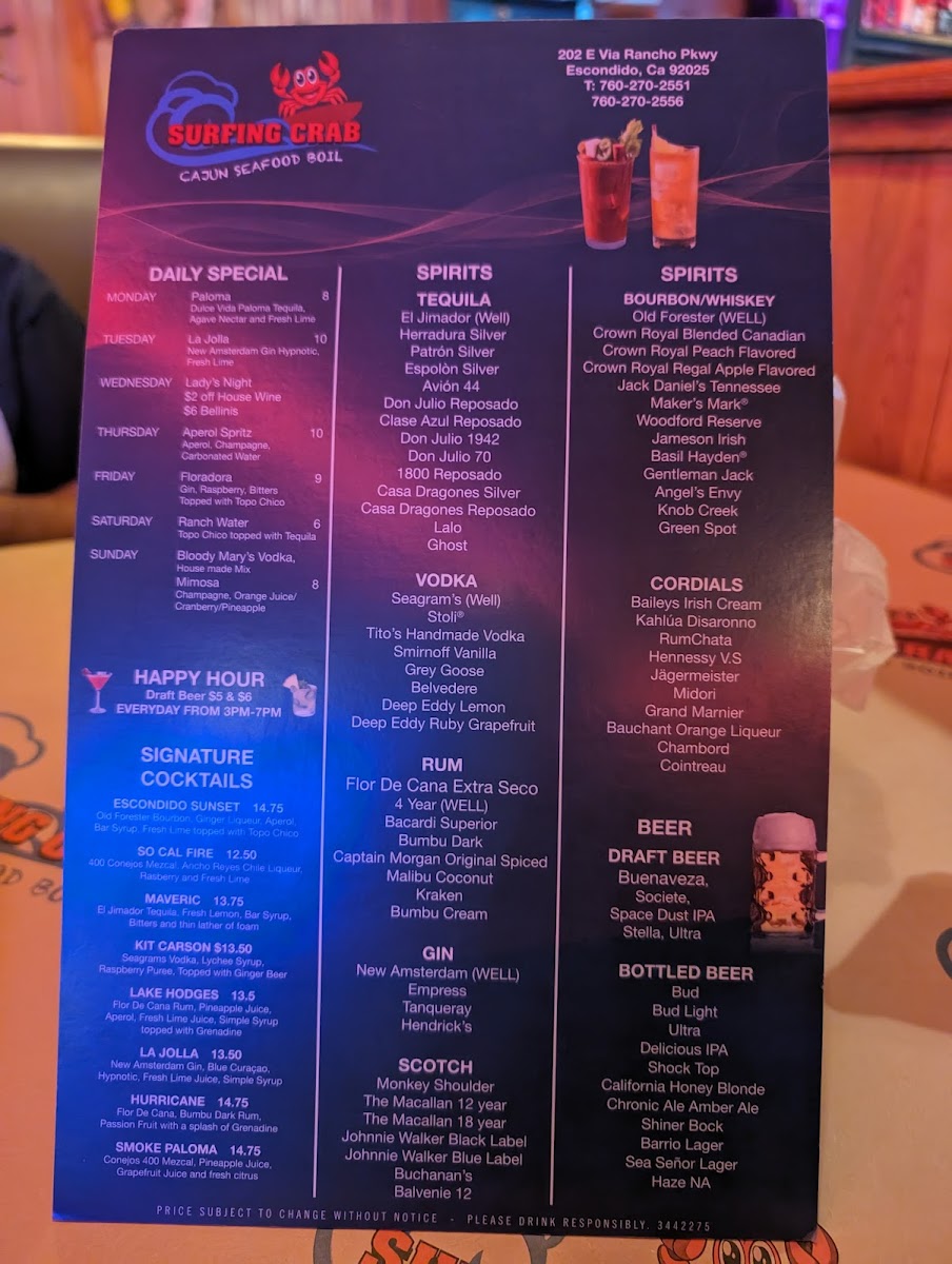 Lobster tail with options for 1 or 3 pcs. Choose from Cajun, garlic butter, lemon pepper, Old Bay and garlic mix, or Surfing special flavors. Spicy levels from mild to fire.